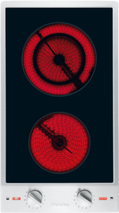 Com duas zonas de cozinhar com aquecimento elétrico.