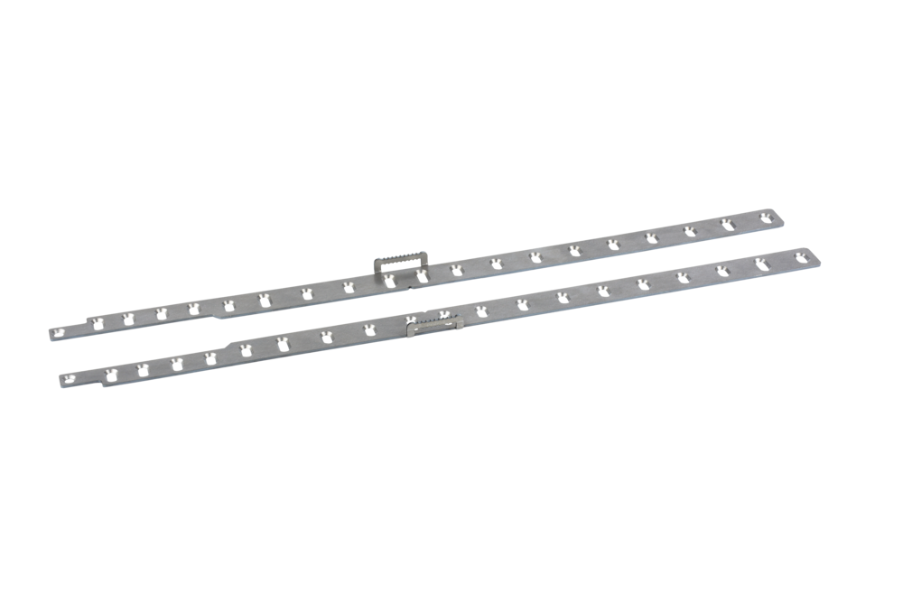Para instalação de frentes de móvel com ranhura para puxador central, horizontal.